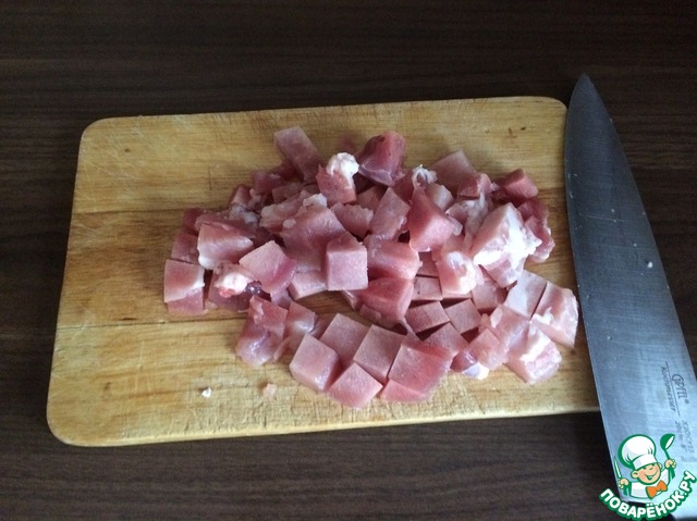 Мясо режем кубиками примерно 1 см