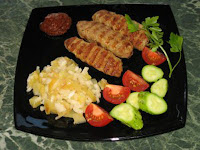 Хотя мы кебапчета подаем не под чесночным соусом, а с жареной картошкой, зеленым салатом или с салатом из огурцов и помидоров. А лучше было бы с «шопским салатом». И с красным сухим вином, или с ракией.