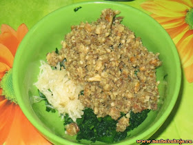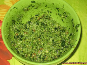 ✿ Измельченные грецкие орехи и чеснок смешайте с зеленью.