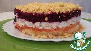 Собирается салат слоями, по всем правилам селедкошубного жанра.