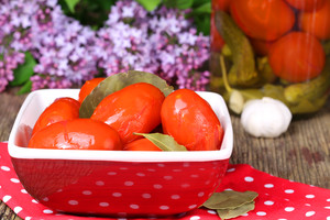 Тара. Чем больше объем тары, тем дольше идет процесс брожения. Солить помидоры можно в дубовых или буковых бочках (заранее замоченных и пропаренных горячим содовым раствором с последующим промыванием холодной водой), пластиковых бочках, застеленных полиэтиленовым пакетом, банках, глиняной и эмалированной посуде. Главное, чтобы посуда не окислялась, иначе вредные вещества из ее покрытия перейдут в готовый продукт. Соленые помидоры накрывают обычно капроновыми крышками, реже закатывают под жестяные. Готовить тару и крышки можно точно так же, как и для засолки огурцов и других овощей: стерилизовать и прокипятить. При засолке в большой посуде: бочках, кастрюлях — нужно позаботиться о том, чтобы был гнет, и помидоры не всплывали на поверхность.